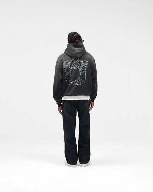 - Represent Hand Drawn Thoroughbred Hoodie - "Aged Black"